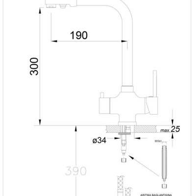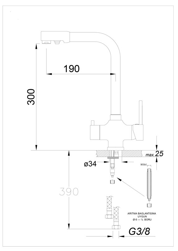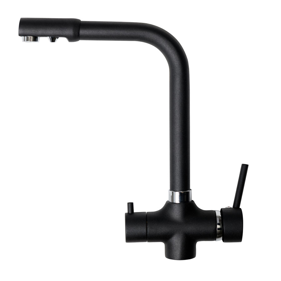 Siyah Arıtmalı Batarya 3’ü 1 arada mikser musluk, tek musluktan soğuk, sıcak ve arıtma cıhazına bağlama imkanına sahip…