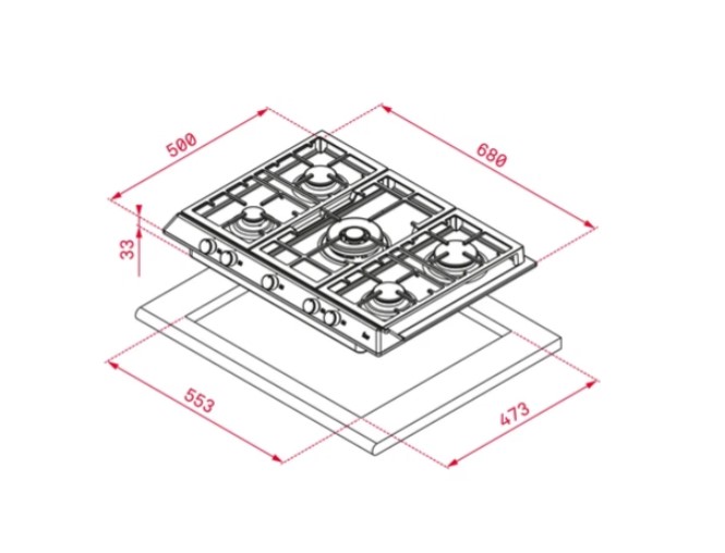 • 68 cm metal yüzeyli gazlı ocak