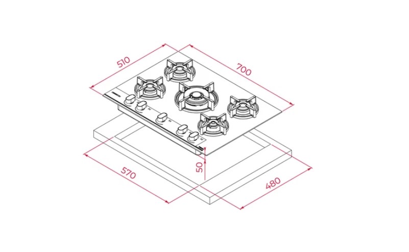 Infinity G1 70 cm Cam Gazlı Ocak – Italdesign Giugiaro Özel Tasarım